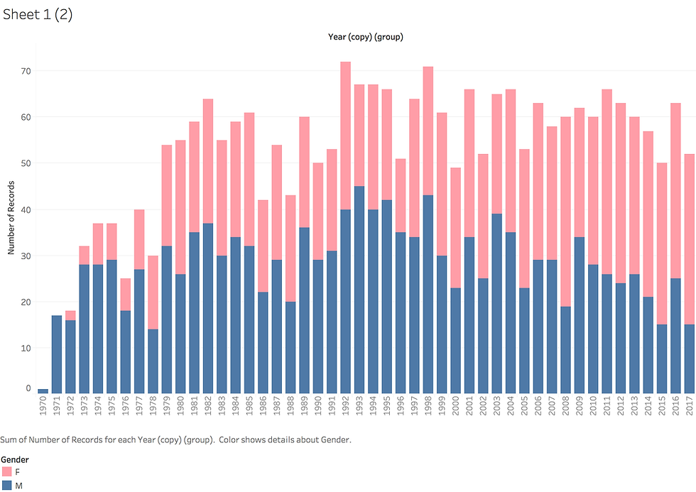 The process started with sketching and gathering the data. I was trying to experiment with both innovative and traditional ways of showing data. I took the information to tableau and started first processes and visualizations in this environment. However, eventually I ended up with final versions that were combination of tableau and Illustration skills.